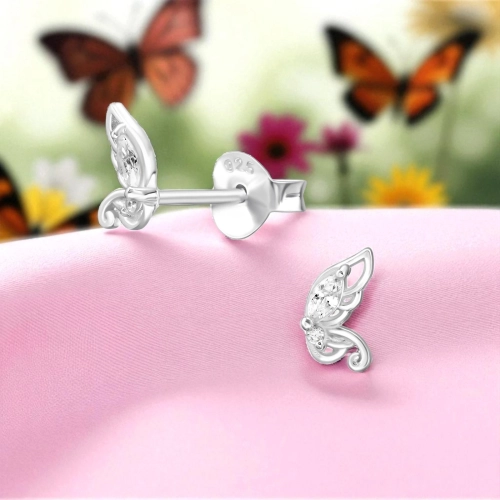 Motýlie krídla so zirkónmi zo striebra 925 - Puzetové náušni