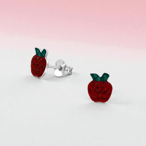 7,5 mm Jablko s krištáľmi - Šperkové Striebro 925 Puzetové Náušnice S Kameňmi A4S50692